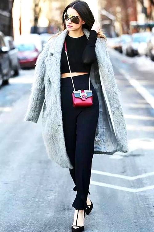 Oversized大衣会遮盖住你身体大部分的面积,因此适度露出肌肤可以平衡大衣的面积,而这几年大热门的Crop Top中空短版上衣就是相当好的选择。