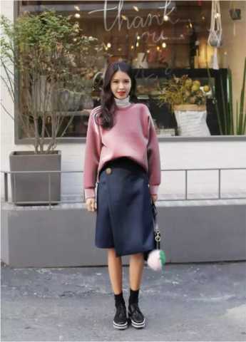 2016年最流行的颜色,粉色莫属。难以抵挡的粉色诱惑,这个冬季让你更加性感迷人,颜色搭配很重要,色系要相近。搭配灰色毛衫白色阔腿裤从色系上保持一直,让整体很协调。
